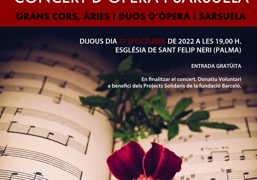 Anunciamos nuestro próximo concierto del 27 de octubre a las 19,00 horas en la Iglesia de Sant Felip Neri de Palma. Un gran concierto con fragmentos de Ópera y Zarzuela en la que contaremos con la colaboración de la Coral Municipal de Andratx. Con varios solistas, como Cristina Van Roy, Gerónimo Seib, Laura Melo o…
