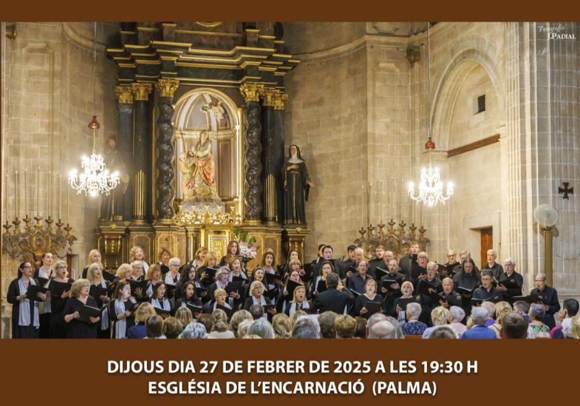 El jueves día 27 de febrero a las 19:30 h. la Capella ofrecerá un nuevo concierto polifónico en la iglesia de la Encarnación de Palma. Se escuchará un variado repertorio con obras de compositores británicos, españoles, argentinos, norteamericanos y mallorquines. ¡Ven a escuchar la mejor polifonía con la Capella Mallorquina!