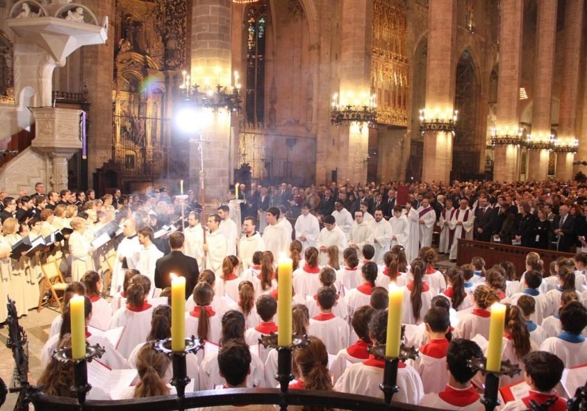 A les imatges, la Capella Mallorquina cantant a la Catedral a la Missa que va tancar solemnement l’Any Jubilar en commemoració del 700 aniversari de la mort de Ramon Llull. Juntament amb els Blauets de Lluc, l’Escolania dels Vermells de la Seu, el Cor de Nins de Sant Francesc i el Cor de la Catedral,…