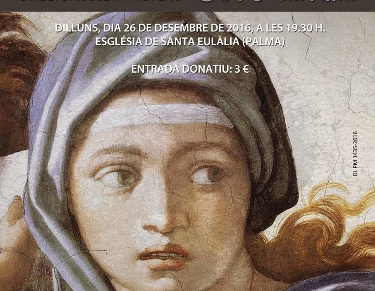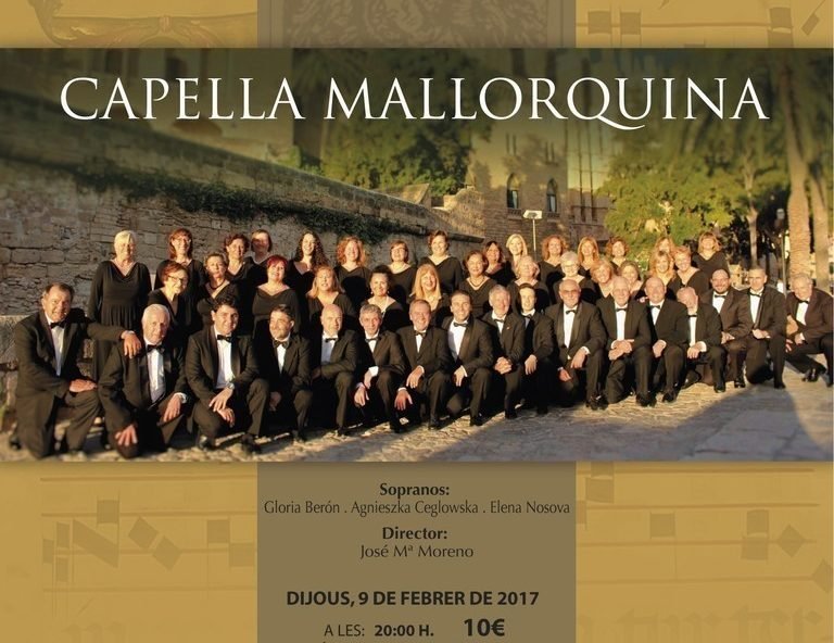 El pròxim dia 24 de Novembre de 2016 la Capella Mallorquina celebrarà un Concert Polifònic amb motiu de la celebració de Santa Cecília, patrona de tots els músics. Serà a les 19:00 h l’Església de Santa Catalina Thomàs de Palma i contarà amb la participació de les sopranos solistes Gloria Berón i Agnieszka Ceglowska.
